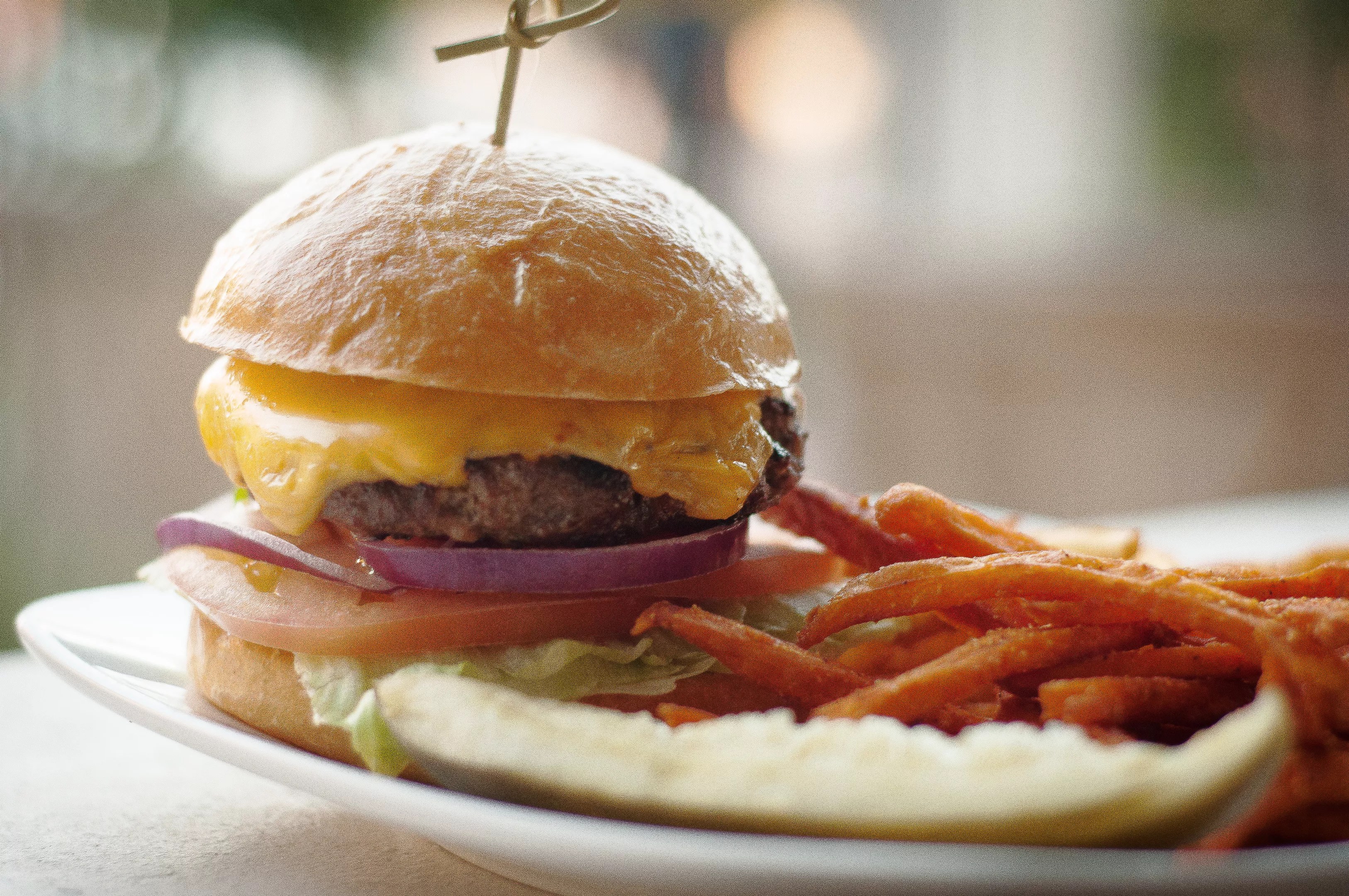 Items on The Vig’s menu include burgers and sweet potato fries.