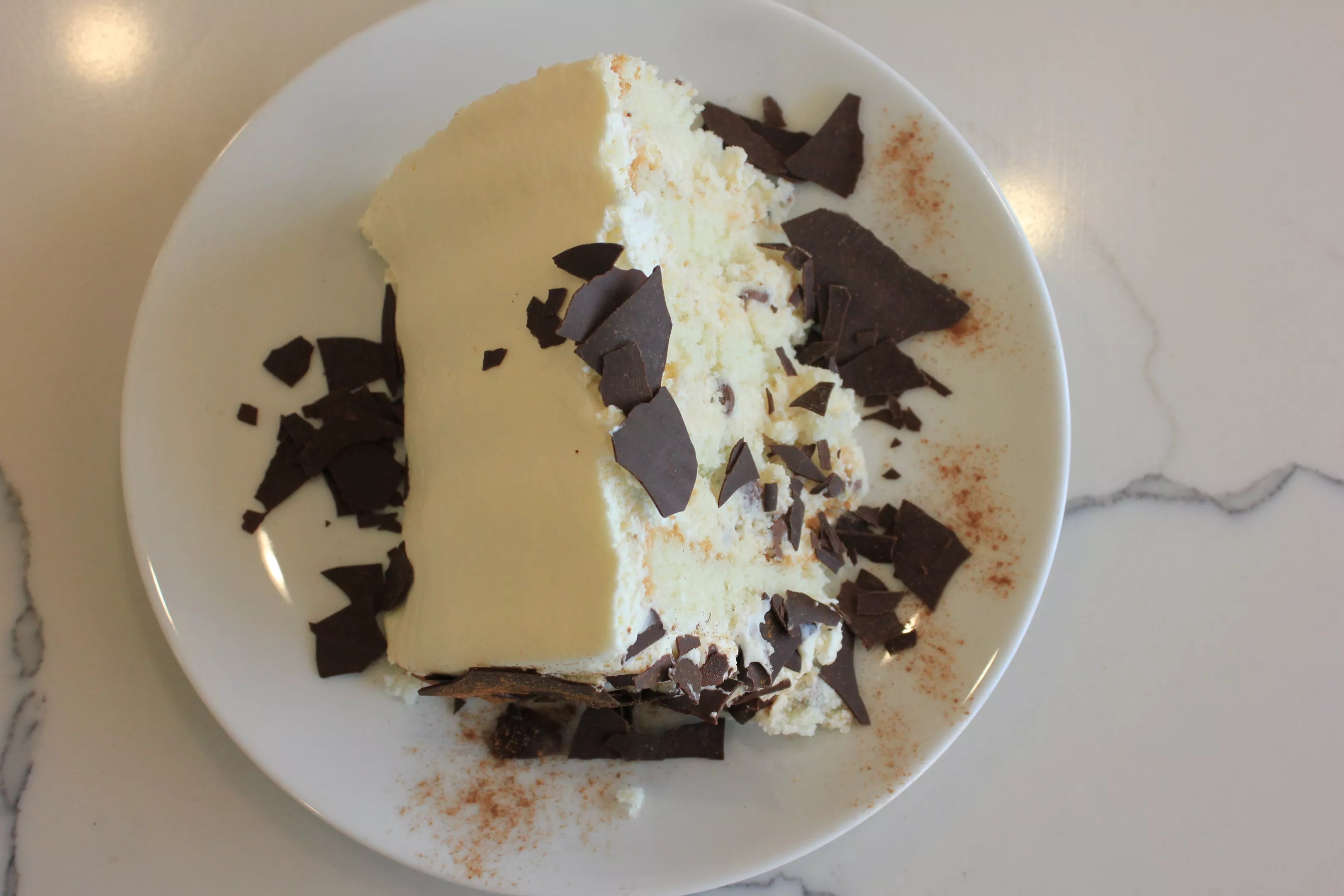 Tuck’s cassata is tall, white, and coated with thin chocolate shavings. There are five layers separated by chip-flecked cannoli cream. The cake is sponge. It is very light, as light as the cannoli cream with its cinnamon kiss, as light as the whipped cream spread on the outside of the cake. If you eat and love cassata, you feel that with this one you are eating more of a wedding cake with faint cassata echoes.