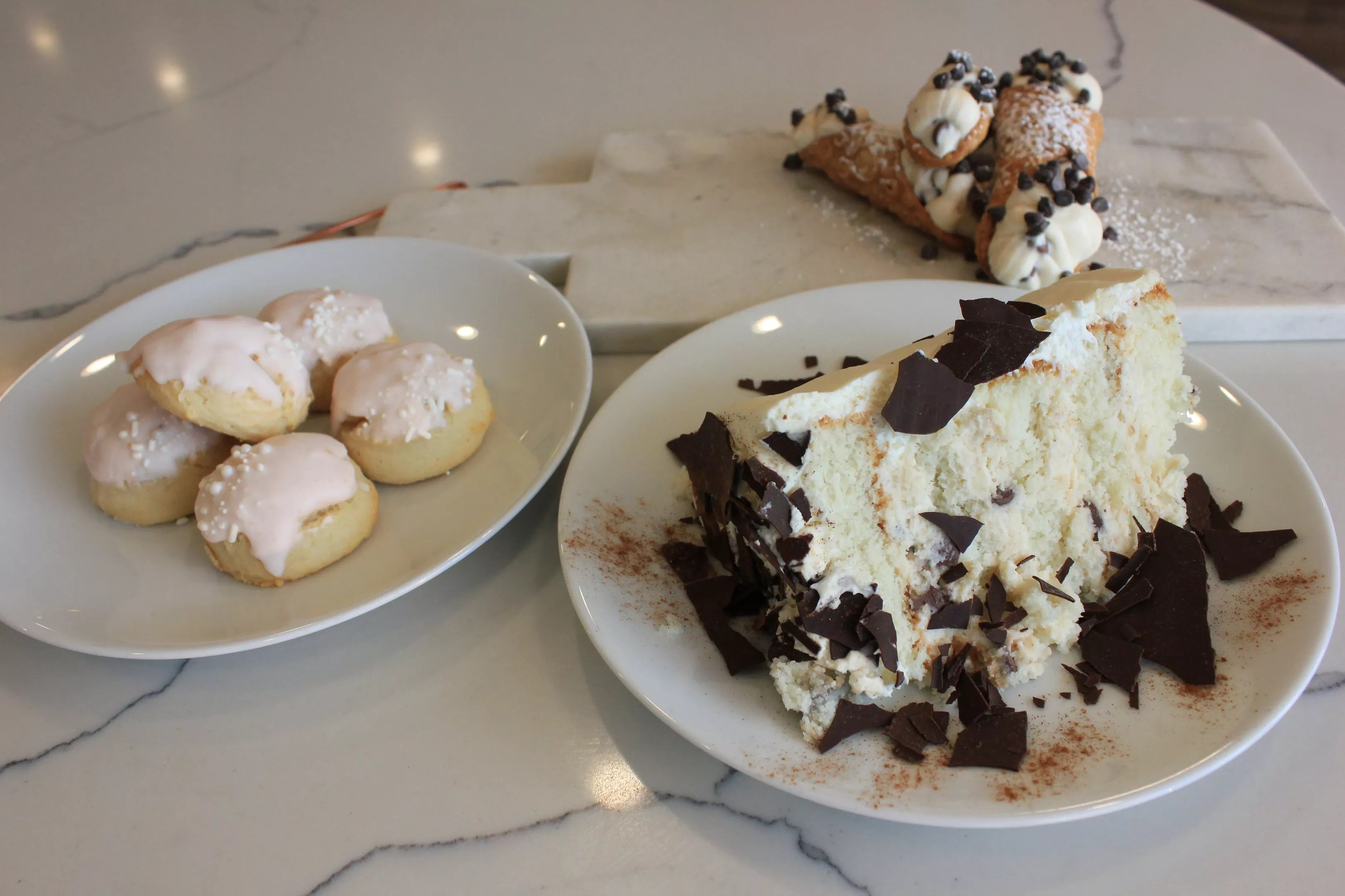 This is the way many Italian-Americans pronounce the word. Tuck’s great grandmother is Sicilian. Tuck herself is from Buffalo, New York. For the last 13 years, her parents have run an Italian-American restaurant in Sun City, Dominic’s Bistro Italiano, where her mom makes the red sauce and pizza dough. After she left her day job, Tuck started to help with desserts. This snowballed into A Bakeshop, opened four years ago.