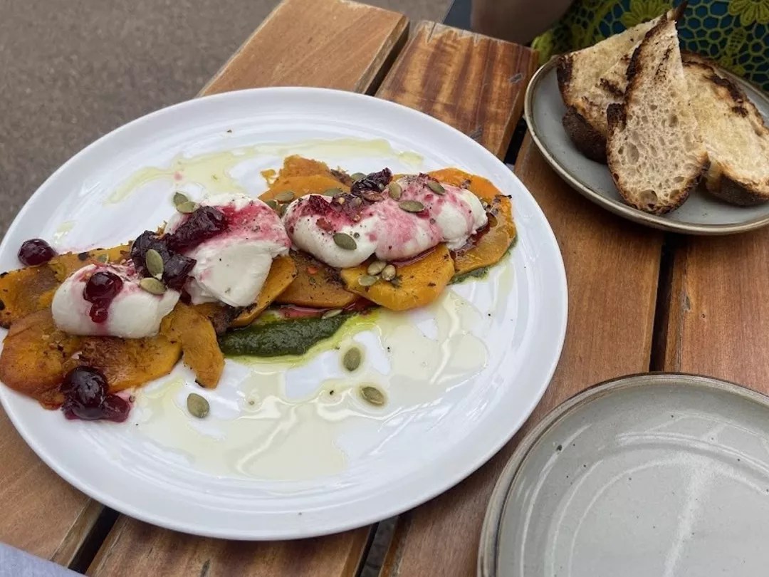 We love Fellow Osteria’s burrata (pictured) and bruschetta. This refreshing appetizer has cranberry and roasted squash that are perfect for Summer.