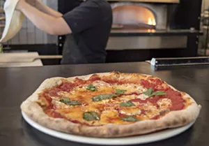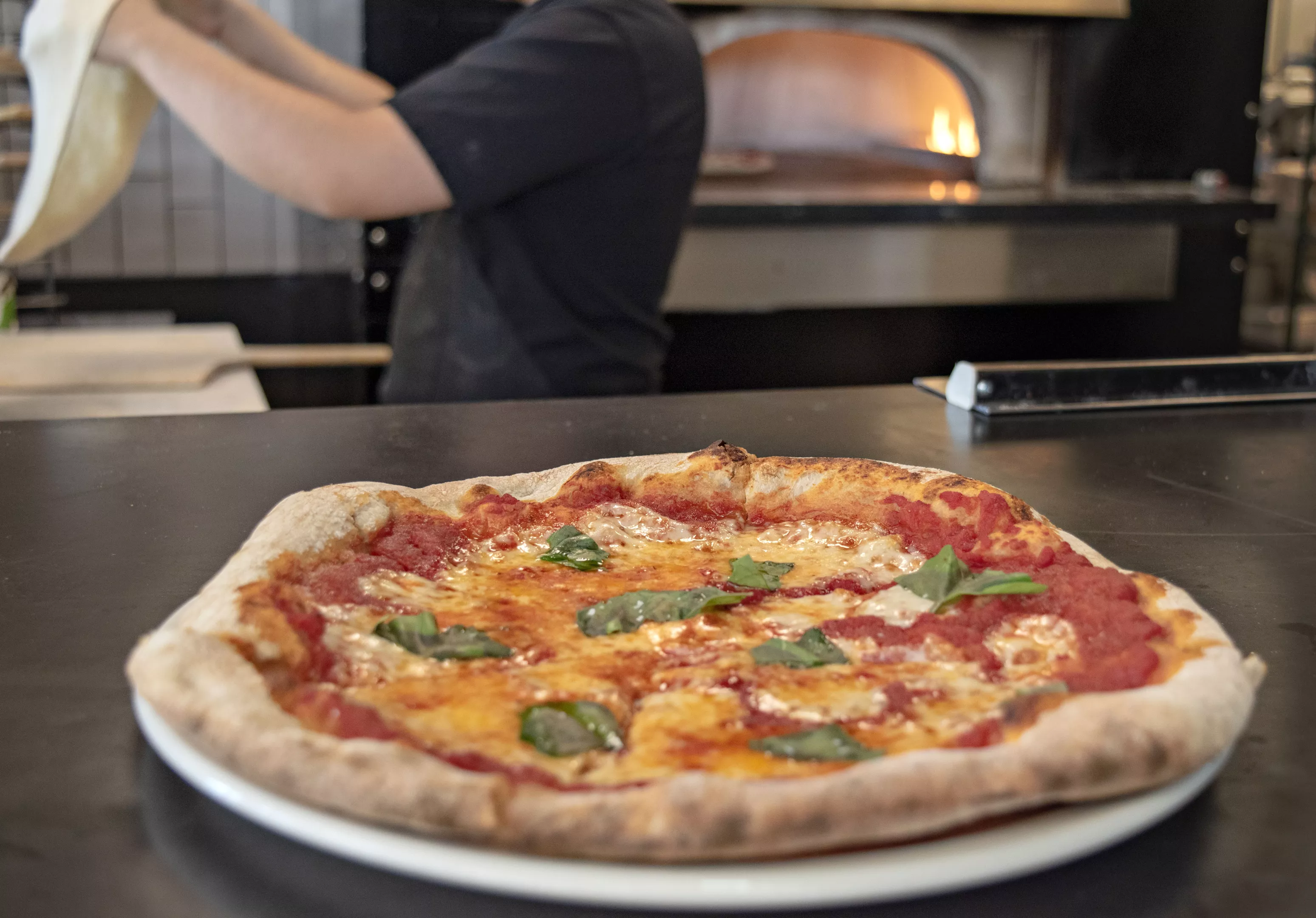 Pizza, too, thrives in its simplicity. Sauce made from Bianco DiNapoli crushed tomatoes has the fruity echoes of marinara made in summer. The crust (made from dough cold-proofed for about 48 hours) and mozzarella (from the province of Bari, same greater region as