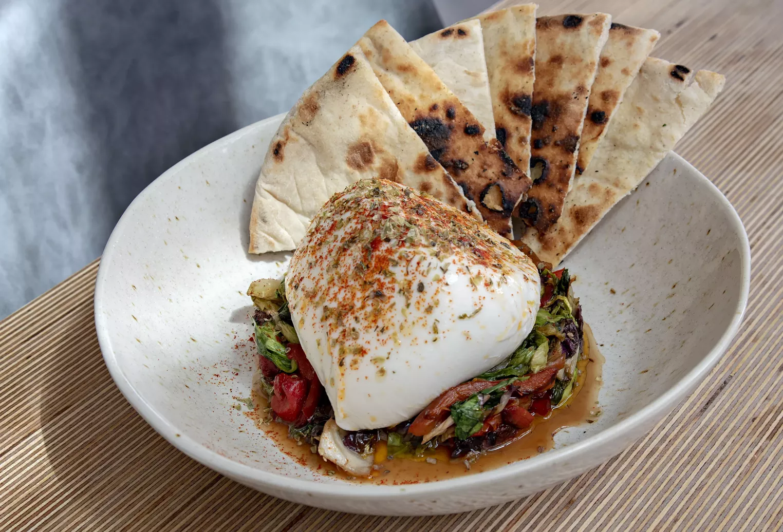 Over the course of your meal, there may be a misfire or two. The best part of a flatiron steak, unevenly hewn into strips and shyly seasoned, wasn’t the steak, wasn’t a wan parabola of saba, and wasn’t dry fingerling potatoes. It was vegetables: peppers, onions, and mushrooms all charred and steaming. Steak should be the star.