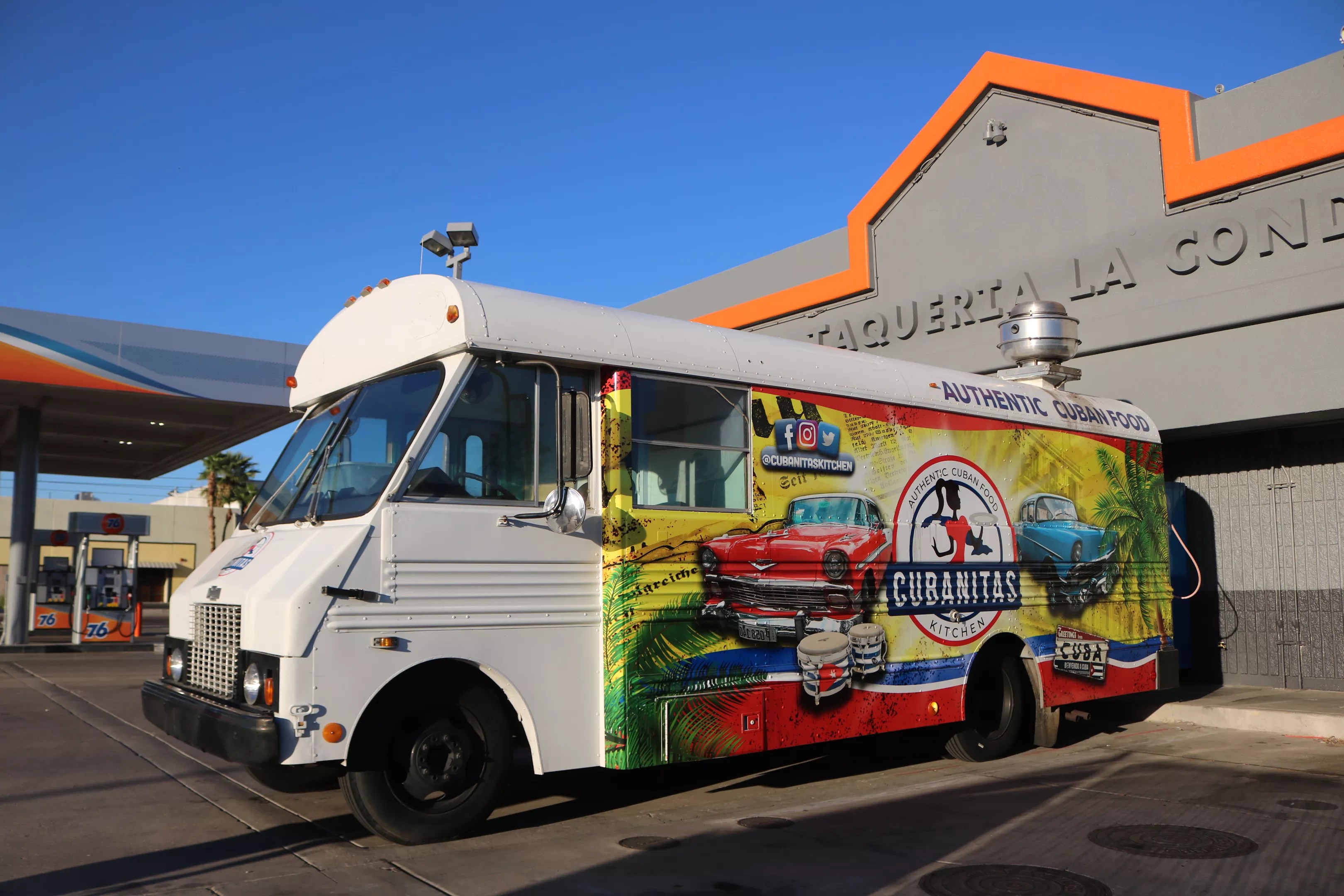 For now, the restaurant’s food truck, which is embellished with a vinyl wrap depicting almendrónes – Cuban slang for the refurbished classic American cars that are a common site throughout the country – and a giant Cubanitas Kitchen logo, doubles as business signage when parked outside.