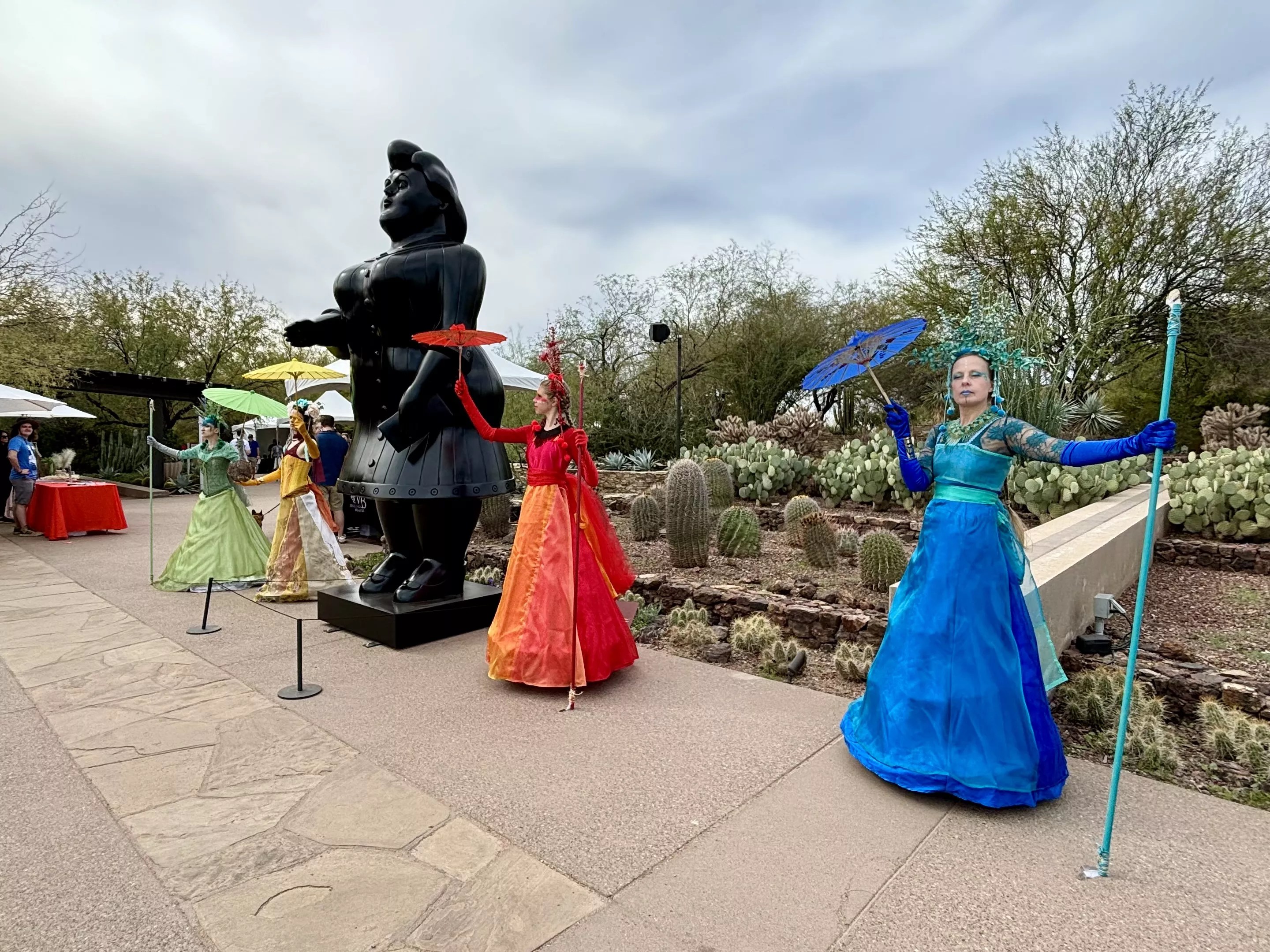 Attendees mingled and tried bites of food and samples of wine and spirits all throughout the botanical gardens, with oversized artwork from Colombian sculptor Fernando Botero and towering saguaros and spring flowers as the backdrop. Here’s a look at the festivities.