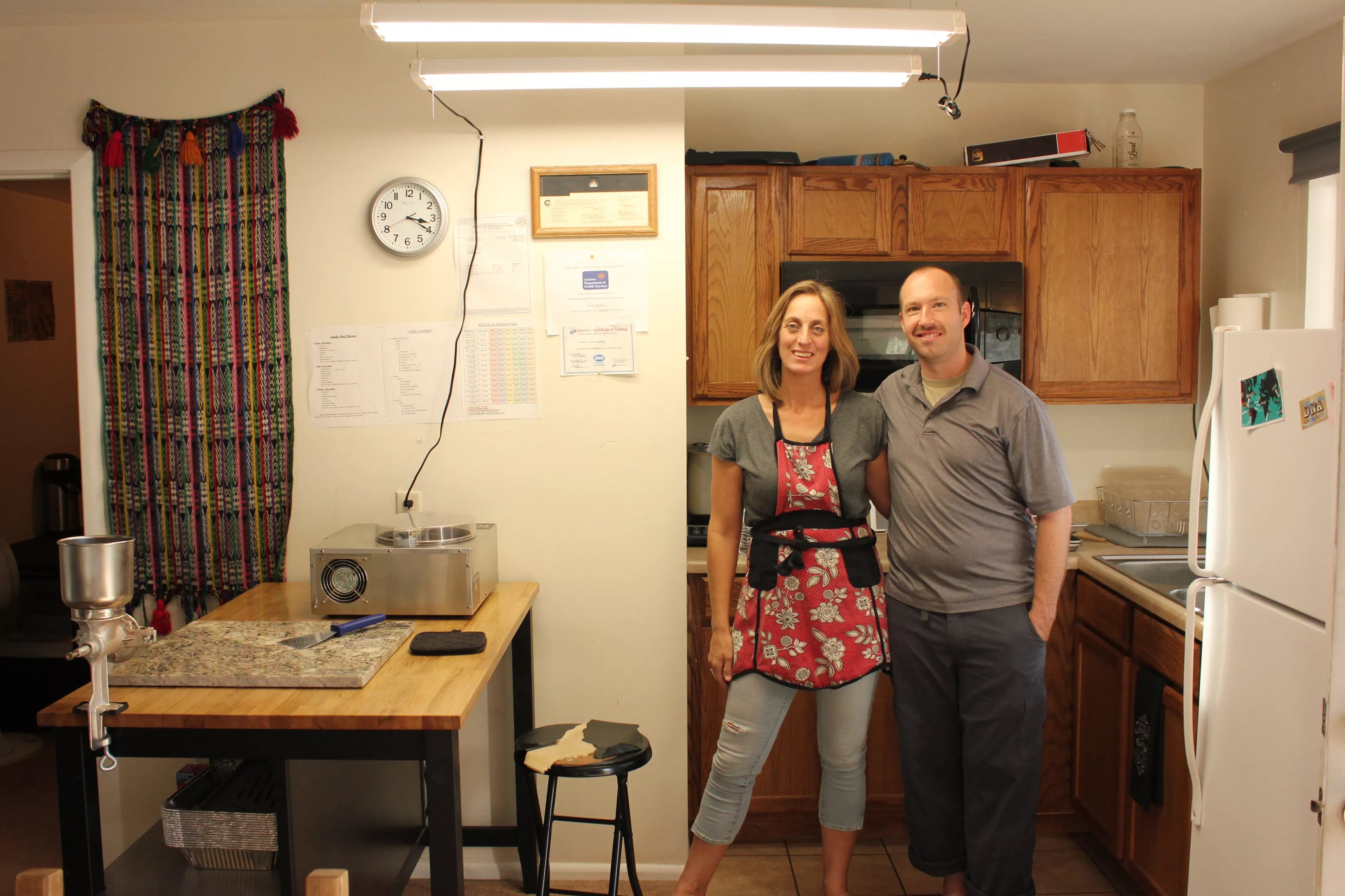 A chocolate factory hums in a Chandler backyard. It’s located just past a leaf-covered trampoline, in a guest house.