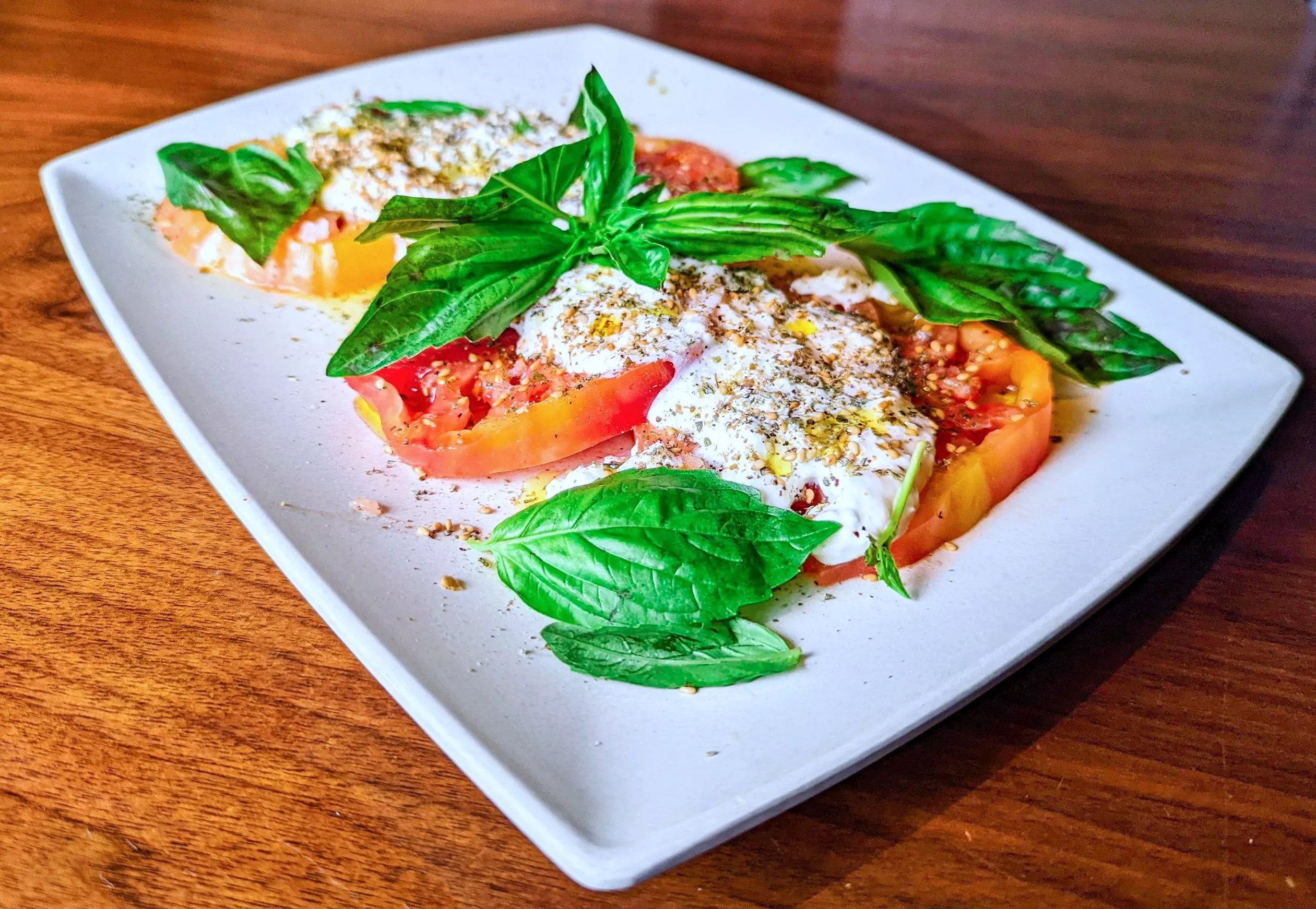 The Caprese tops heirloom tomatoes, stracciatella cheese and basil with a savory hit of za’atar spice.