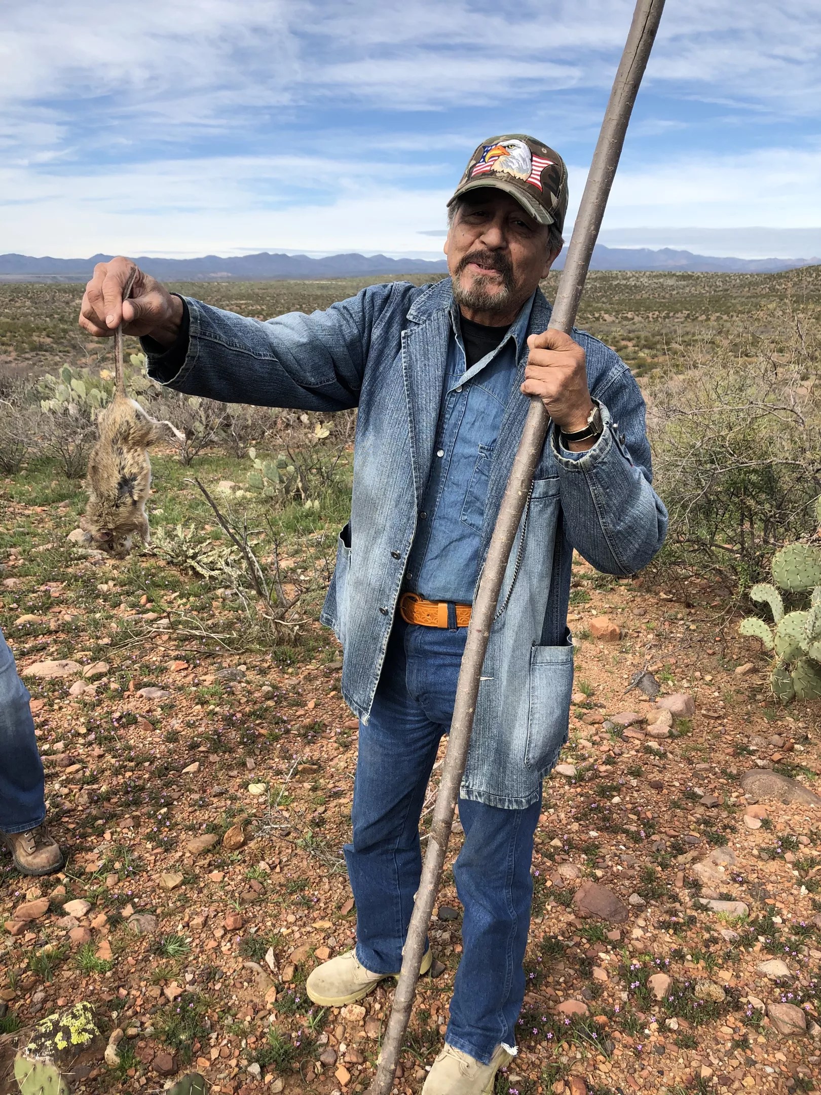 “Pick a pebble, any pebble,” the 52-year-old woman says to the other Apache hunter, a lean young man, the two flanking a dying prickly pear and holding 6-foot-long salt cedar sticks. “In your own way, say thank you, Mother Earth, and know that because we’re going to take his life, throw a rock in. It’s just a way to say, you know, respect for the species.”