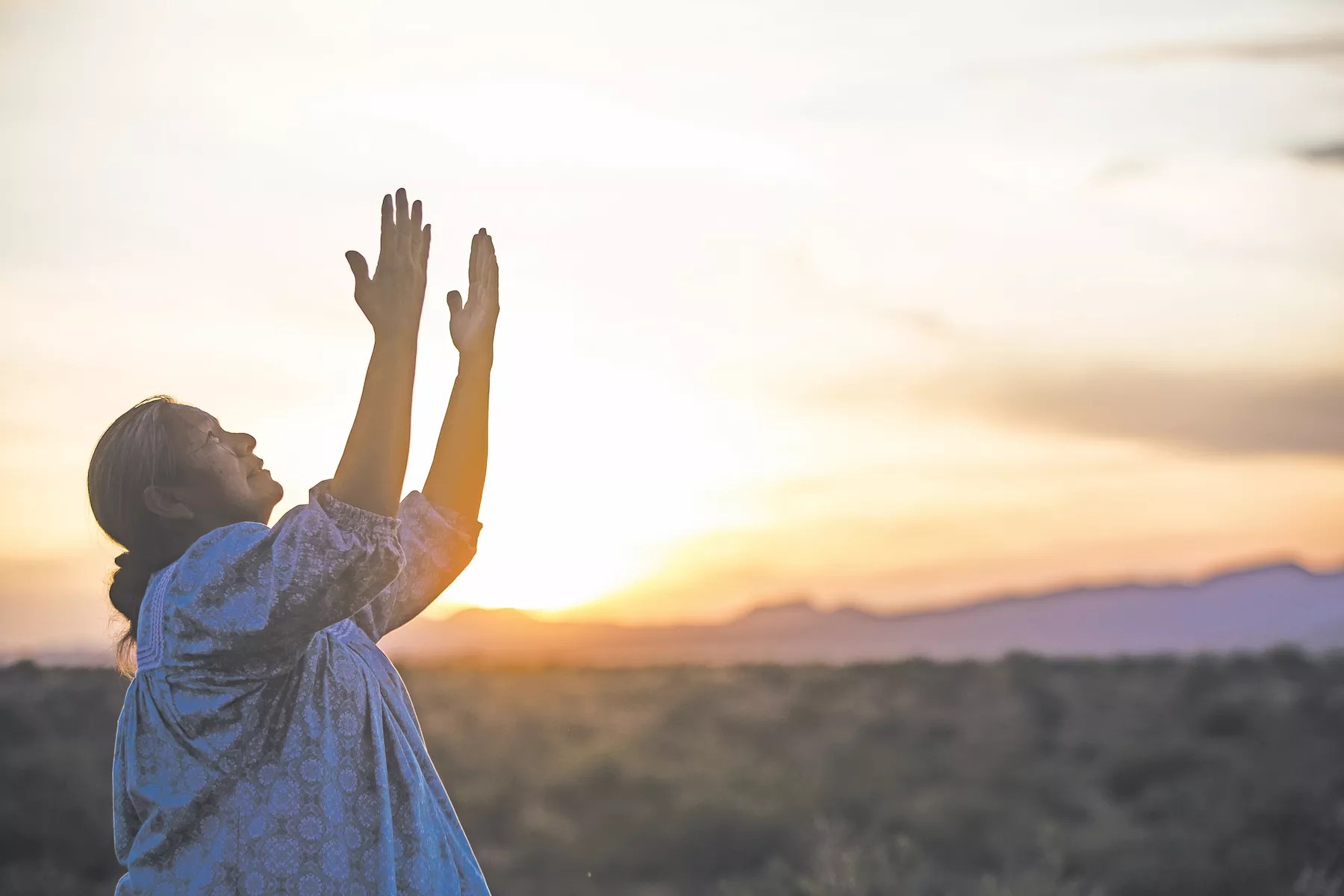 At last, Twila Cassadore lifts a pebble from the earth. She raises it to her forehead. Holding it aloft at breast level, she shuts her eyes and speaks: “Thank you Mother Earth. Thank you for the food.”