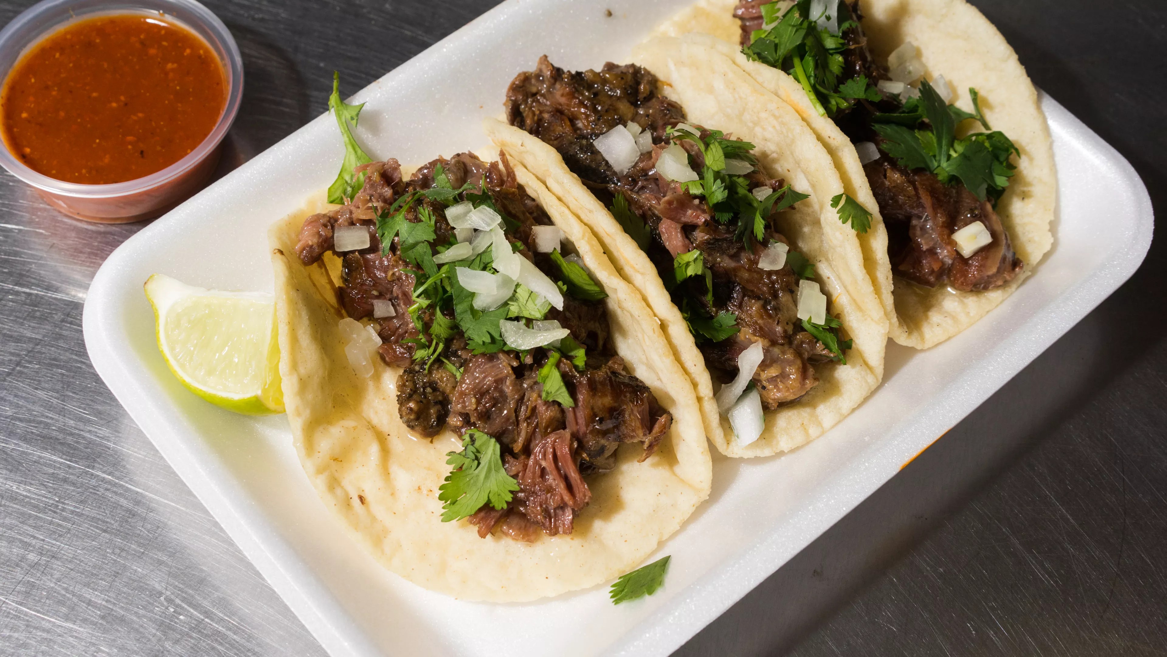 What arrived instead were tacos loaded up with chunks of glistening beef. Big, meaty chunks. I took a bite, and two thoughts crossed my mind, in this order: One, I’ve never had anything like this before. Two, actually, never mind, I totally have. Just not at a Mexican restaurant.