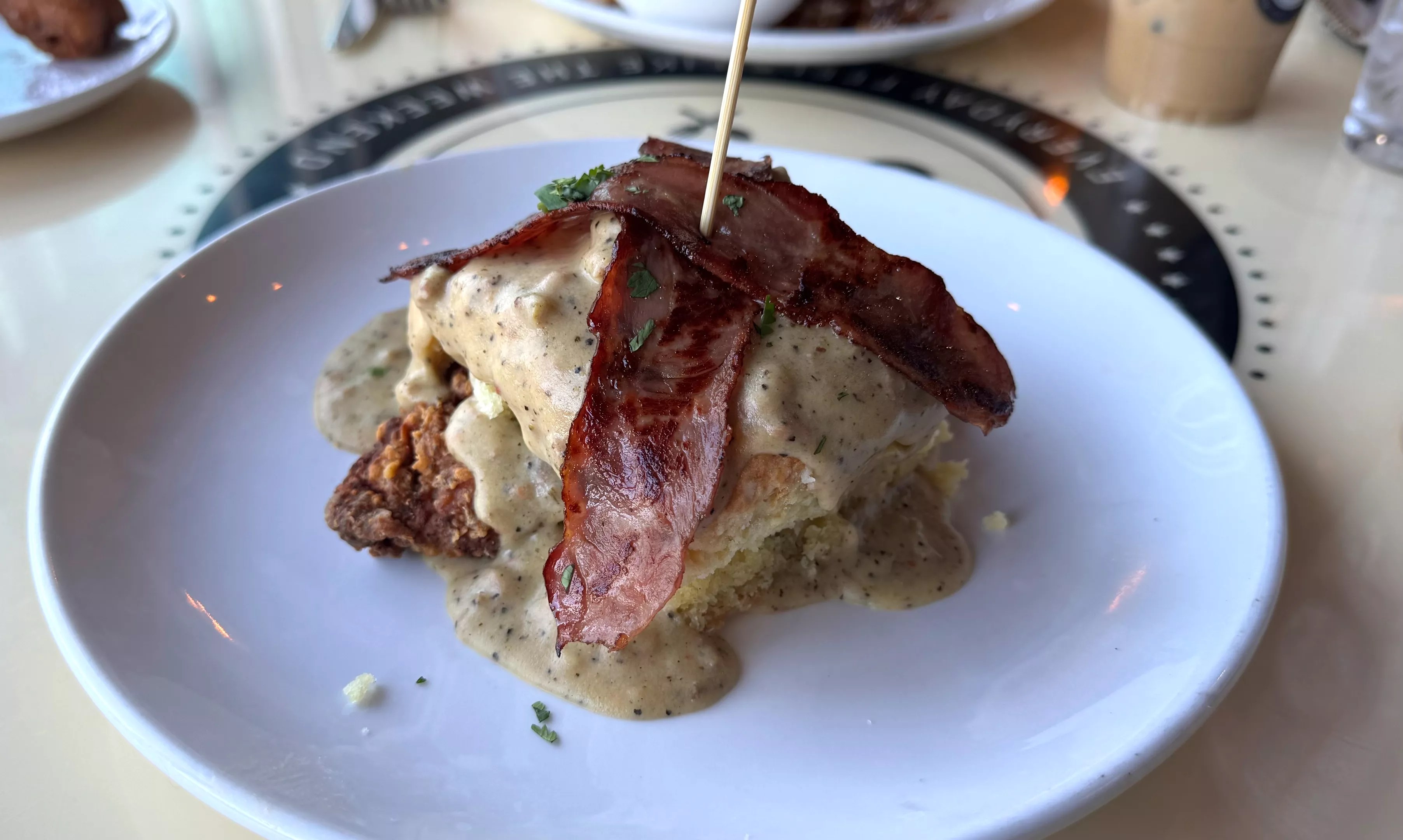 If you can’t choose between fried chicken or biscuits and gravy, the Fried Chicken Biscuit at Brunch & Sip includes both brunch staples in one.