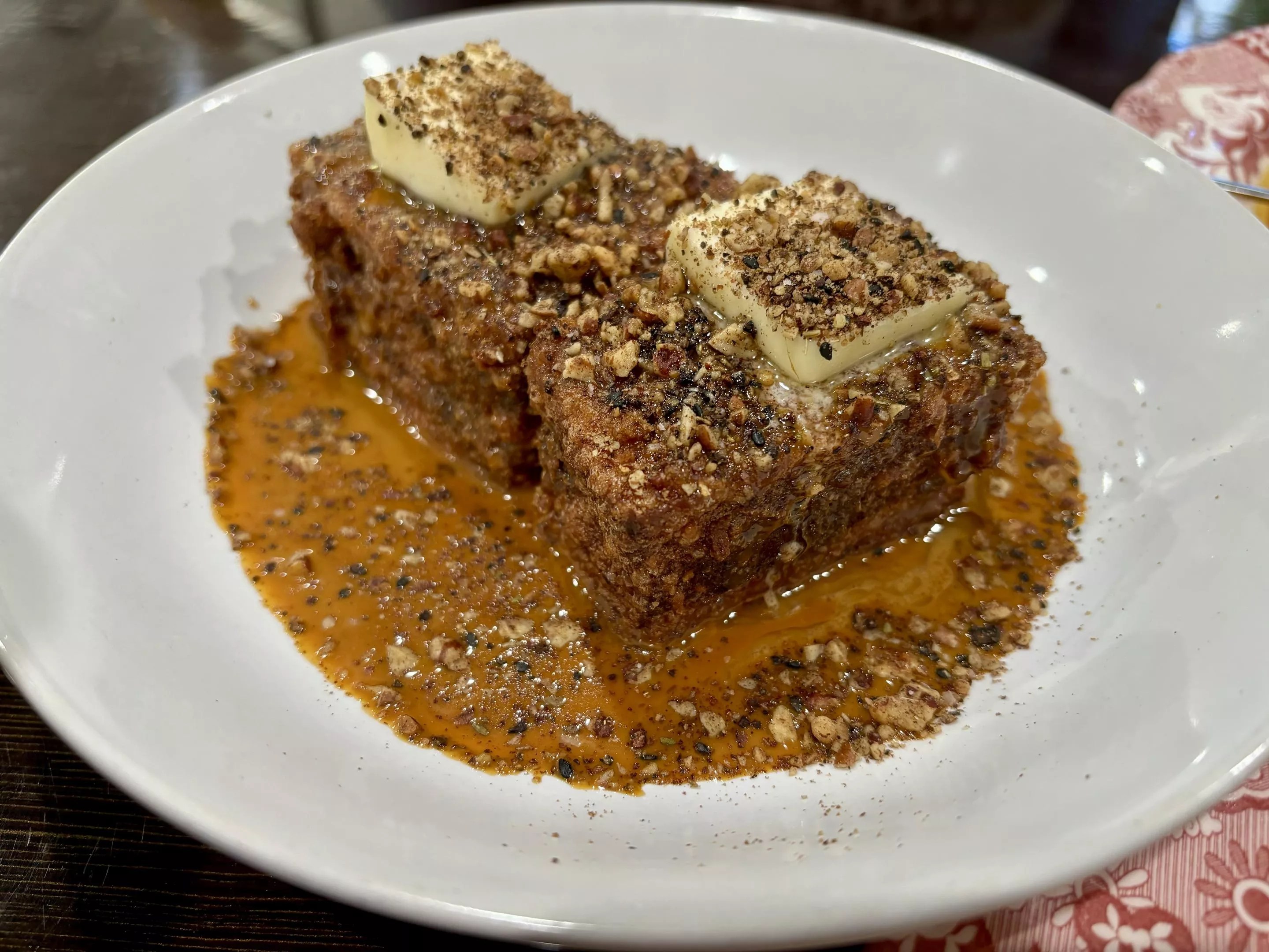 2800 N. Central Ave. A100 CC’s on Central, a Southern and soul food restaurant tucked into an office plaza, puts a spin on many of its dishes, adding culinary artistry to classic staples. But perhaps the dish with the most creative license is the French toast. It starts with three layers of milk bread which are stacked like a layer cake and deep fried. Over the top, there’s a condensed milk caramel and a pad of butter on each piece. Then the spices get in the mix. Cinnamon and nutmeg are accompanied by cardamom and fennel, which blended with crushed pecans, give the soft bread a crunchy contrast. This is not your average French toast. But if you’re up for an adventure, this dish is an exceptional sweet, savory dessert and breakfast combo.