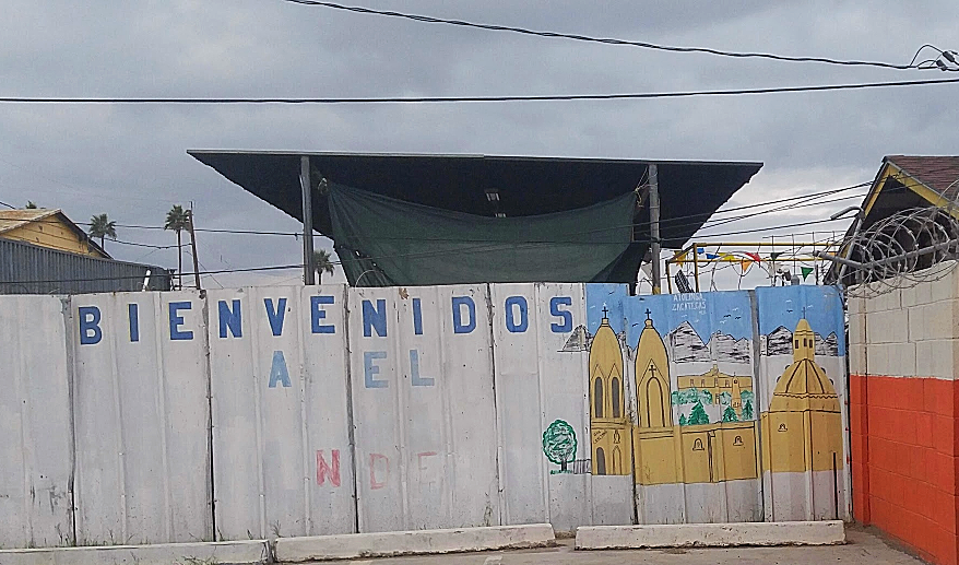 Behind the restaurant, though, there are signs of life and color in a tiny parking lot: a sun-faded yet colorful mural depicting a bucolic small town in the north-central Mexican state of Zacatecas, painted on an aluminum fence festooned with barbed wire.