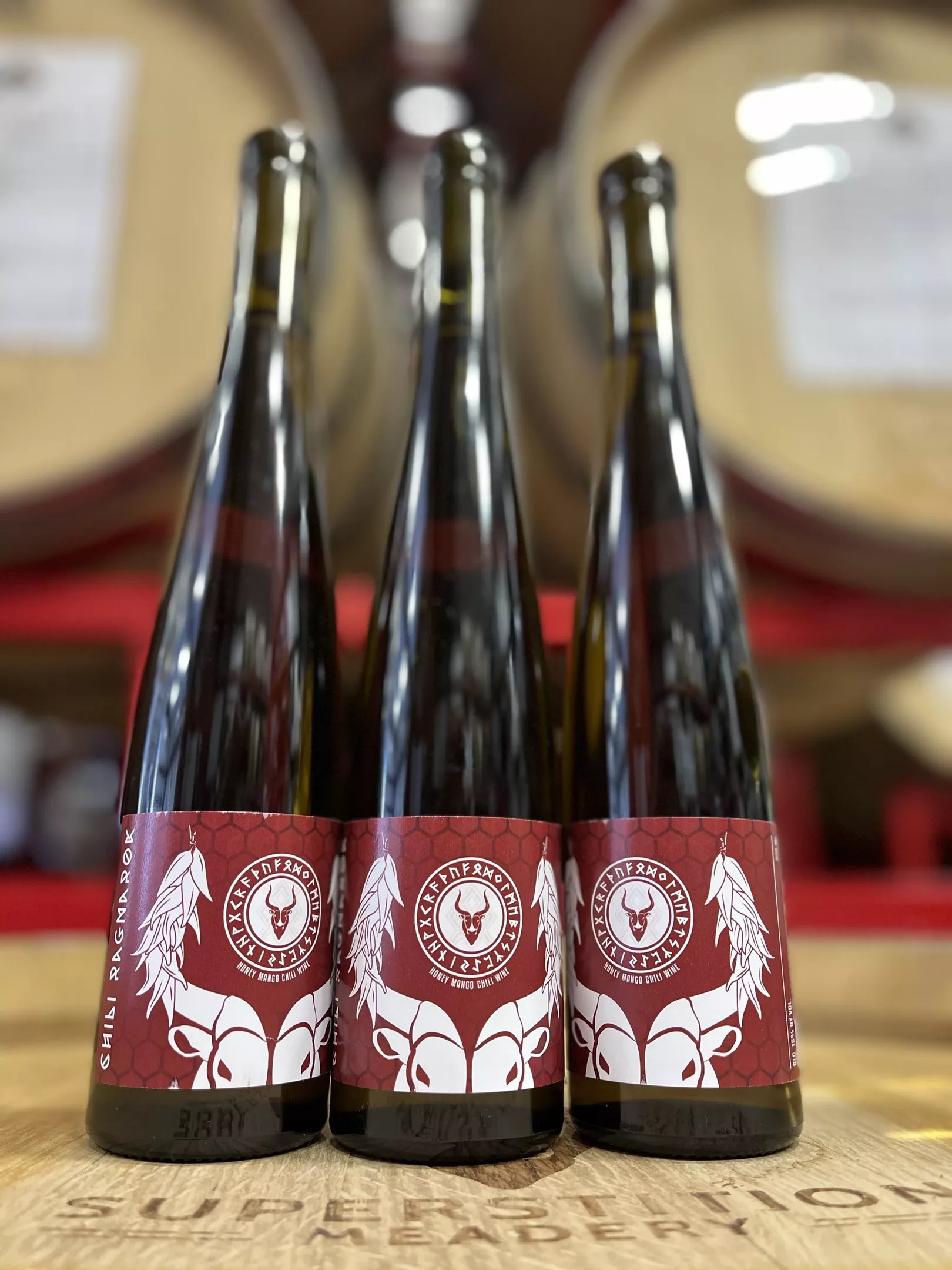 Superstition Meadery’s Chili Ragnarok, a mead made with mango and Hatch red chiles.
