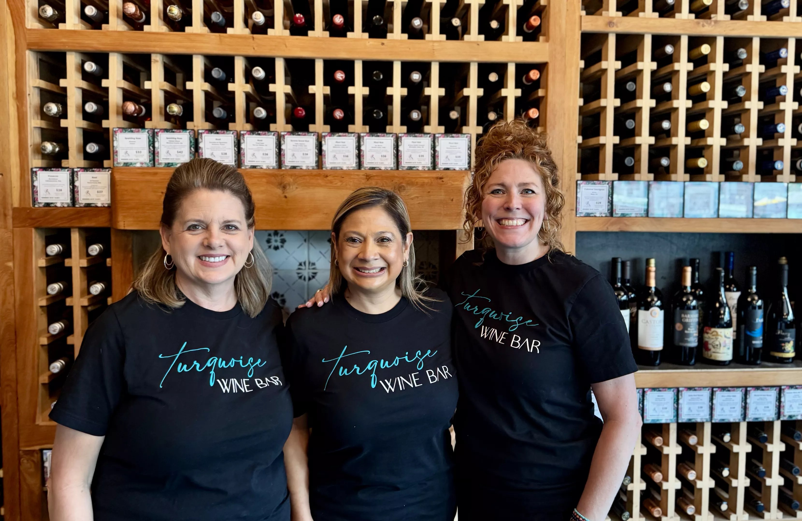 Oly Salgado (center) is opening the first franchise of Turquoise Wine Bar, which was founded by Laura Hernandez (left) and Jen Sinconis (right).