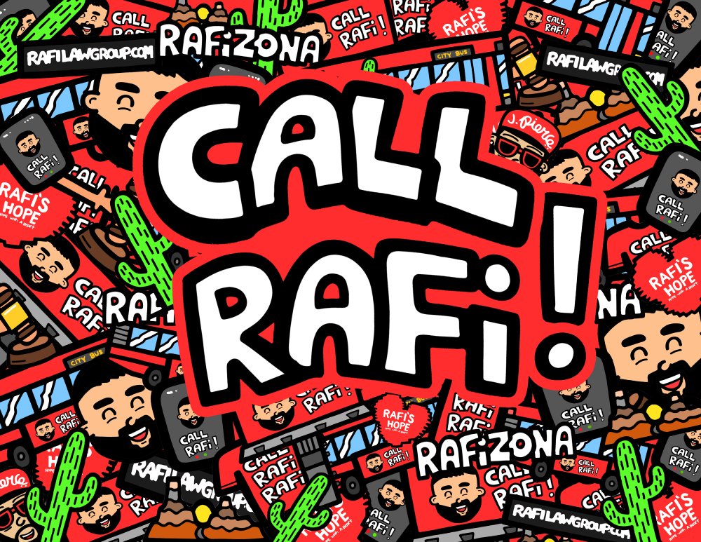 The result is an explosion of energy: caricatures of Brandon Rafi, cacti, city buses, “Call Rafi!” callouts, and the Rafi’s Hope logo. The art is packed with a bold energy that makes people look twice.
