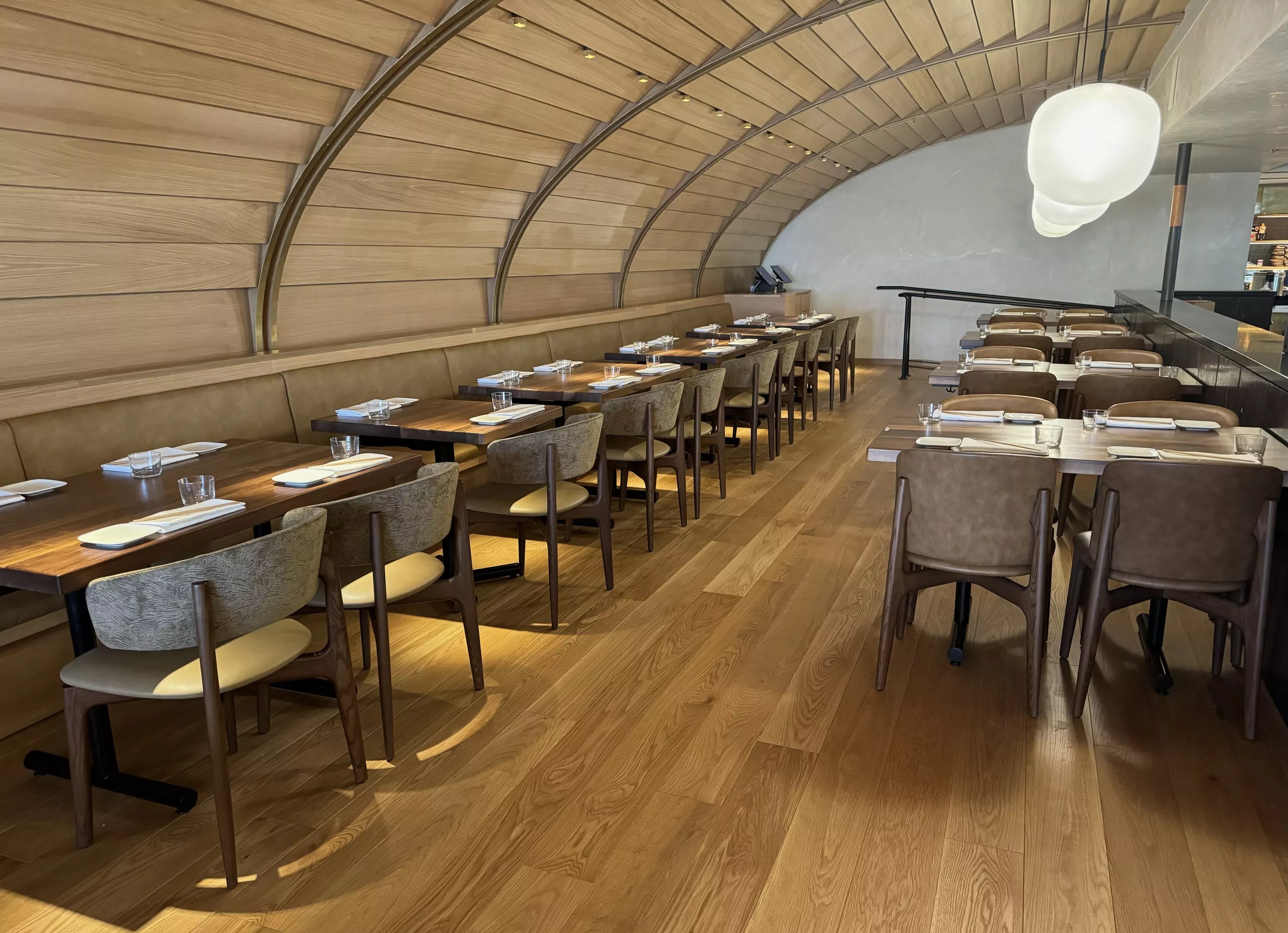 Gone is the dark wood of Bandera, which closed in 2021, and the aura of what a 1994 Phoenix New Times review called an “80s yupscale bar and grill.” In its stead are arched ceilings on each side of the restaurant, featuring wood panels in sandy tones that are echoed in the tables and on the floors. Brass accents pop up throughout, including a large beveled wall separating the entry from the dining areas, adding warmth.